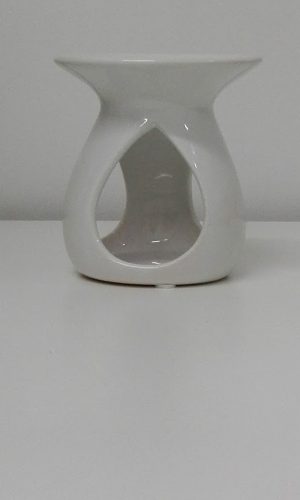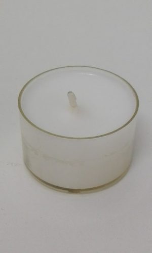 A white pillar candle showing a carved rose design.